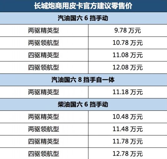 皮卡行业重"炮"来袭 长城炮商用皮卡9.78万元起