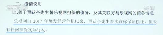对这一说法,乐视网昨日晚间发布公告进行澄清,公告称,乐视网自2017年爆发经营危机以来,贾跃亭先生多次宣称保证偿还,但未有任何担保实际行动。