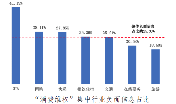 其中在各行业“消费维权”类信息中,OTA平台(在线旅行社)负面信息占比最高,旅游负面信息因“氢气球绳断裂致2人遇难”事件达到高峰。