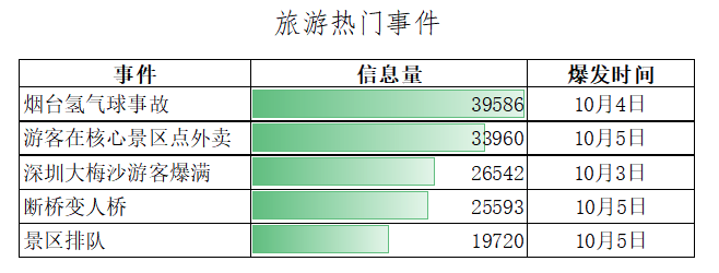 相关负面舆情信息:关旅游景区人多、排队时间长游览时间短、景区点外卖等现象被吐槽较多。