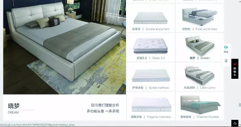 其中一款名为“芝华仕爱蒙双人床婚床乳胶床垫卧室成套家具”的商品展示页面中有一页使用了较大艺术字体展示的“晓梦”二字;另一款商品名为“芝华仕爱蒙主卧现代简约软床布艺双人床踏踏米床”的商品展示页面中使用了较大艺术字体展示的“晓梦”二字。