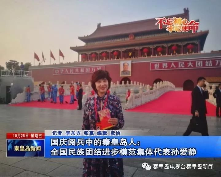与接受检阅的潘美含不同,10月1日那天,孙爱静作为社区代表受邀现场观看了阅兵式和晚上的联欢活动。她所在的海港区北环路街道军工里社区居民委员会荣获了全国民族团结进步模范集体称号。