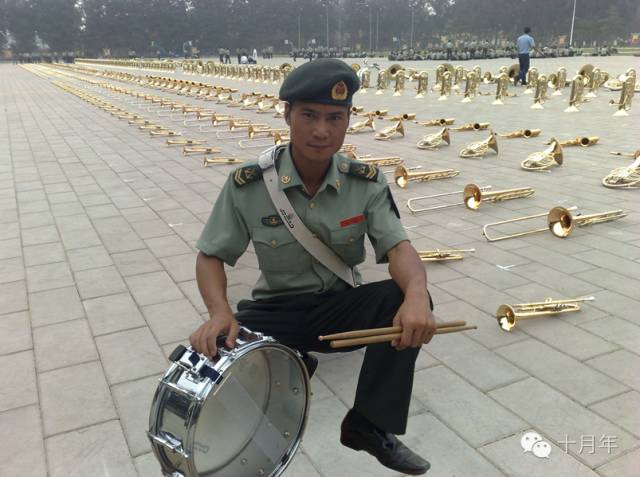 2009阅兵2千人联合军乐团合练中休息时的乐器摆放