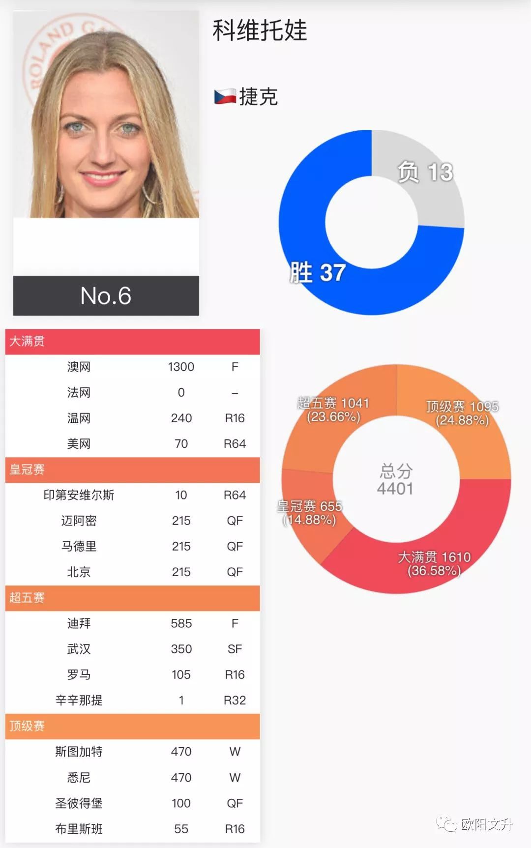 科维托娃在本组中交手记录占优,8胜4负排名第一,小组突围概率比较大。