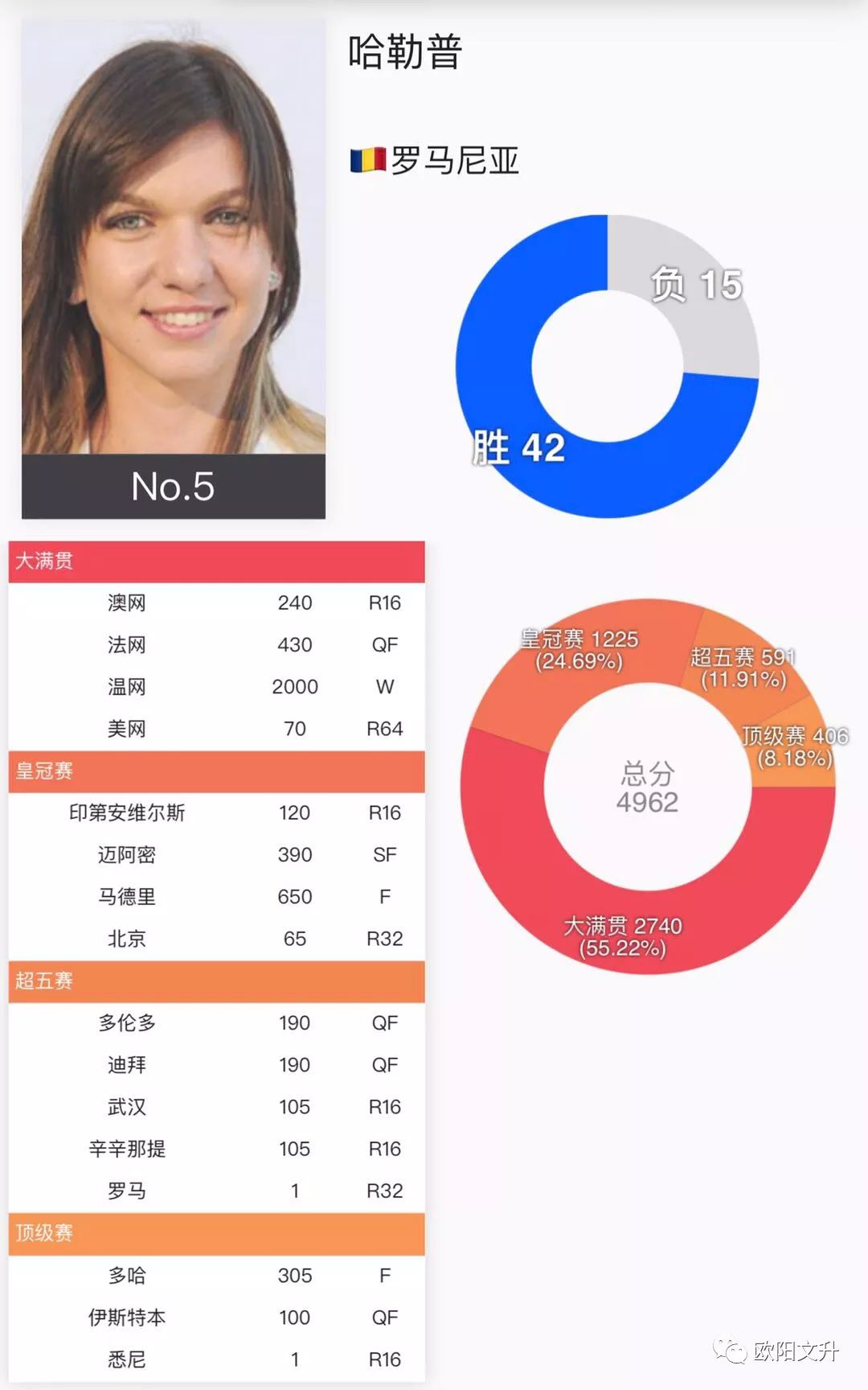 今年哈勒普在温网夺得个人第二座大满贯冠军,也连续第六次拿到了WTA总决赛的门票。