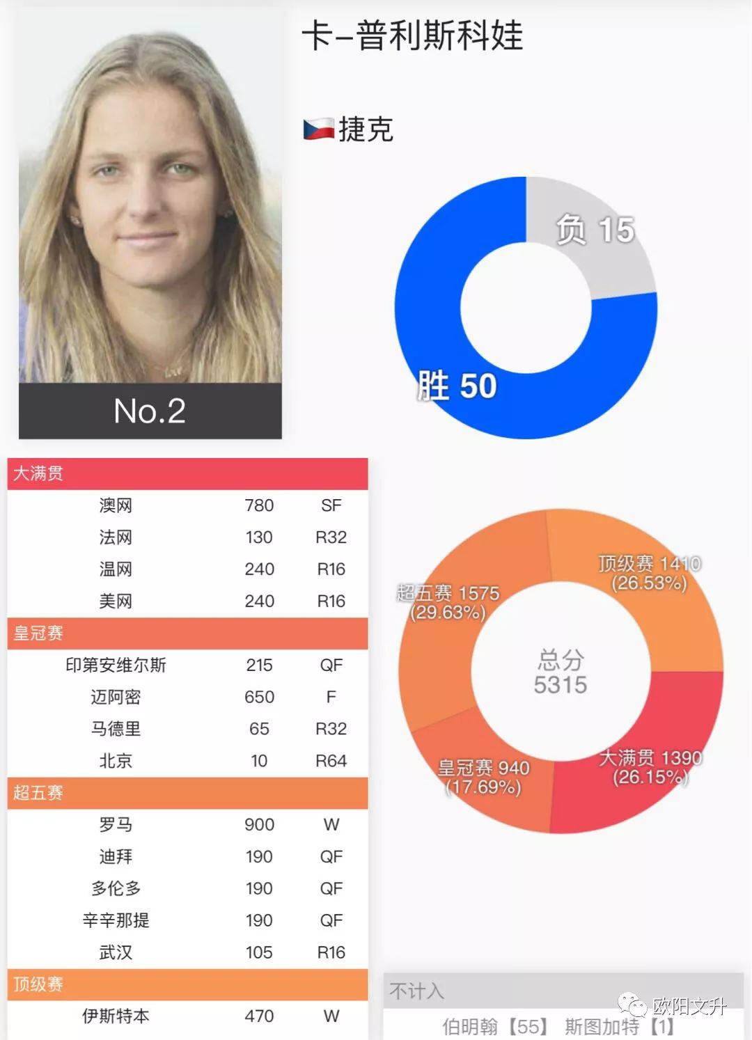 到现在也没有大满贯冠军入账的卡普今年大满贯最好成绩是澳网四强,在罗马和伊斯特本收获冠军,让卡普的世界排名稳如泰山。
