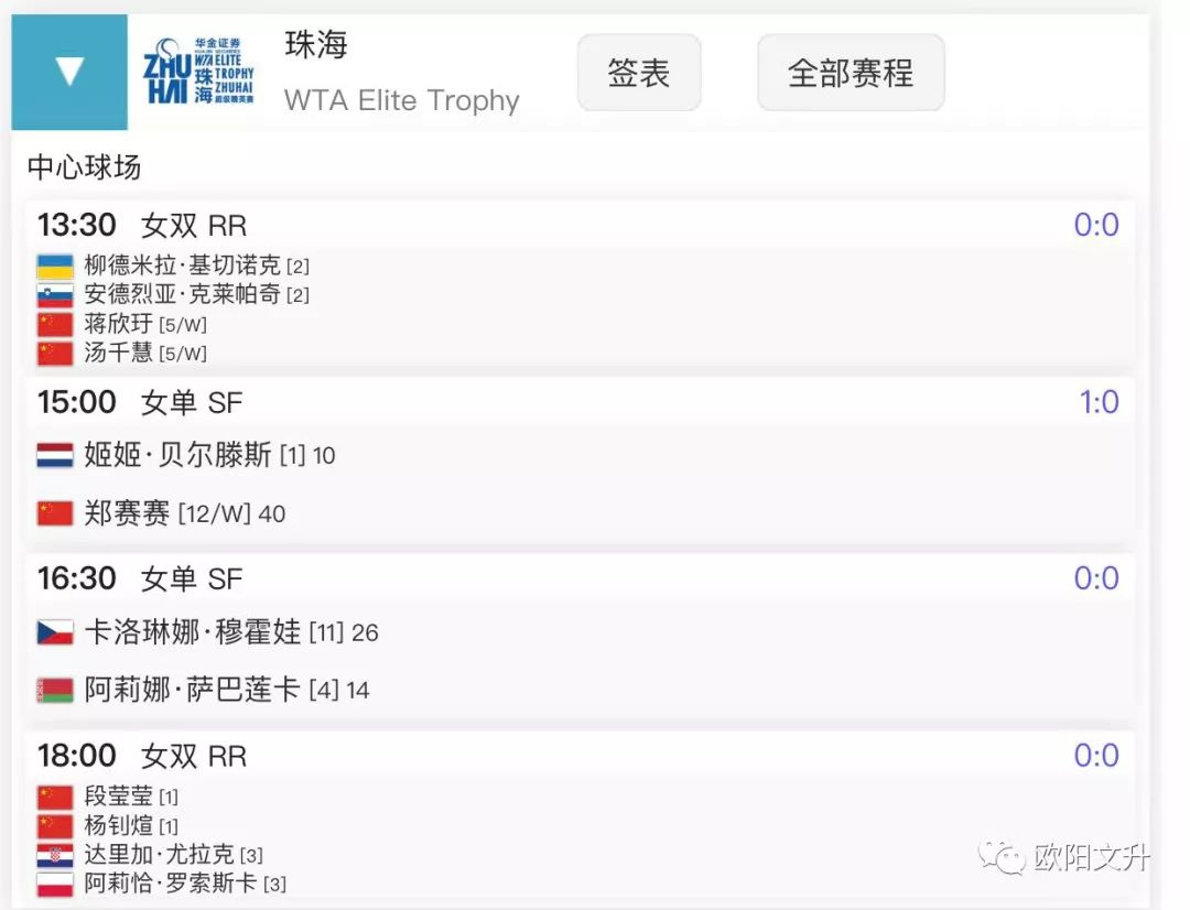 郑赛赛将和头号种子贝尔滕斯展开半决赛的较量;另外一场半决赛在白俄罗斯小清新婉约派美女萨巴伦卡与捷克猛女穆霍娃之间点燃。