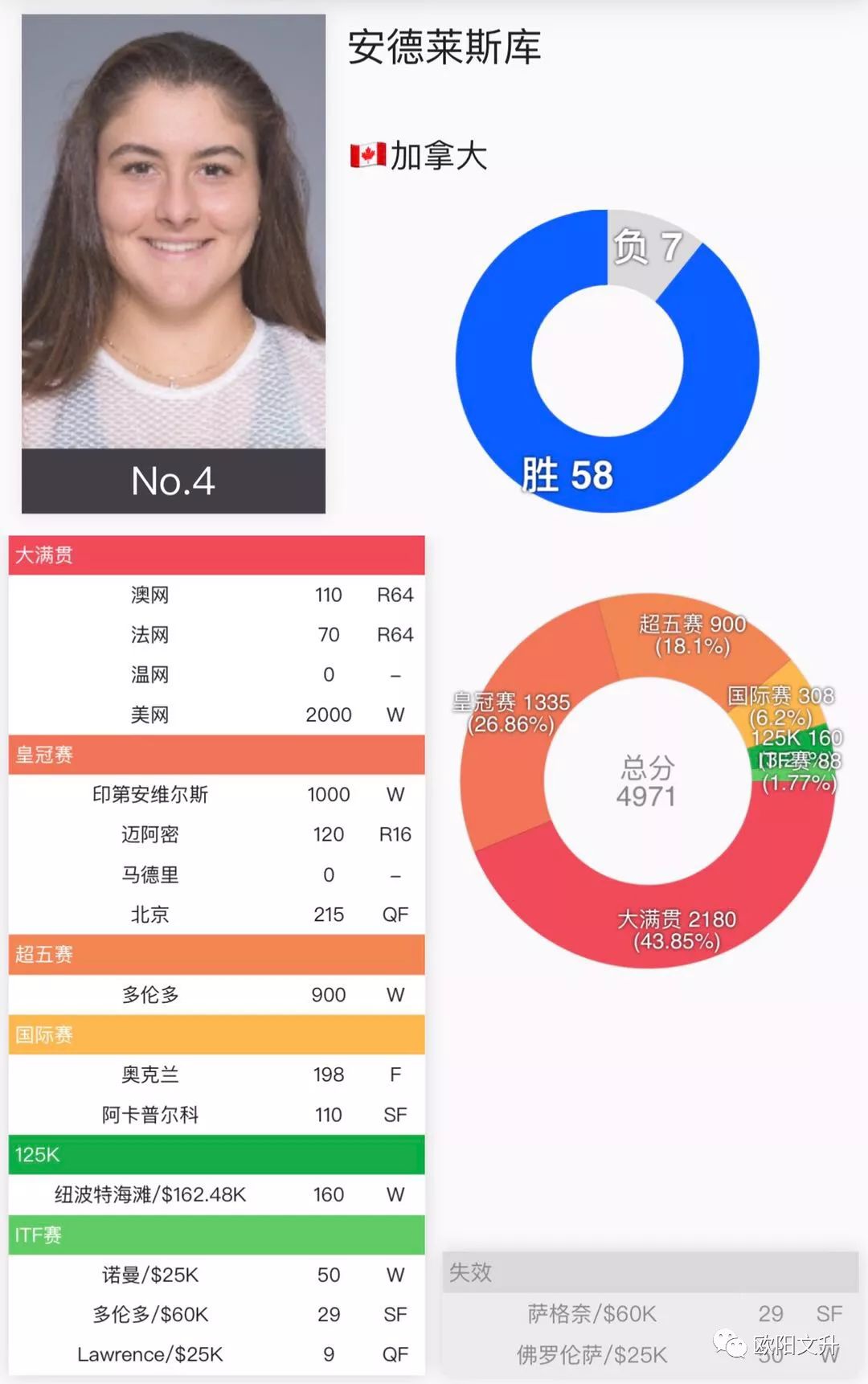 安德莱斯库与哈勒普未曾交手,和另外两位各打过一次,保持全胜。进攻强势防守粘人,吹拉弹唱全都会,还有余力编剧制造drama让对手迷醉,安德莱斯库的强悍,不止星星点点。