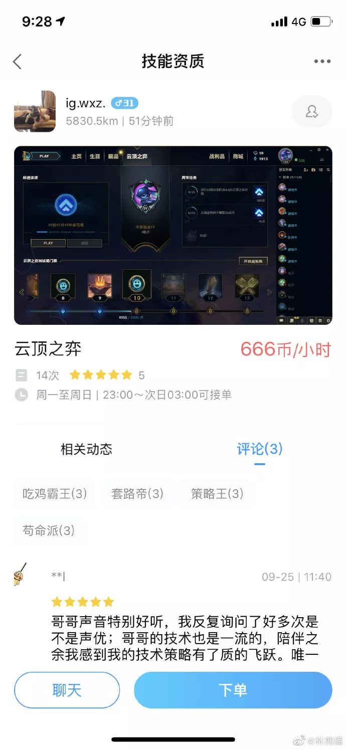 校长在比心上的陪玩价格是666元一小时,显然对于校长来说不差这么点钱,但是还是让很多普通客户消费不起,谁愿意花666元去找个男的陪自己打游戏,不过换个思路,666元,你能和校长畅谈一小时,当然前提是校长接不接单,说不定你能打动校长,获得投资,从此走向人生巅峰也不一定。