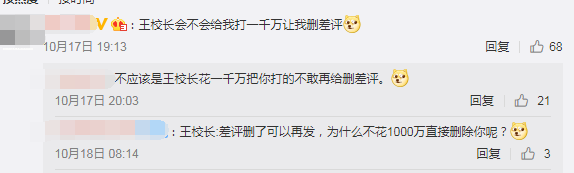 还有网友扬言要校长尝尝收到差评的滋味,这就好比要给一个生活在城堡里的王子一顿社会的毒打?