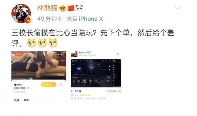 知名博主林熊猫表示在陪玩软件比心上看到了校长的账号。