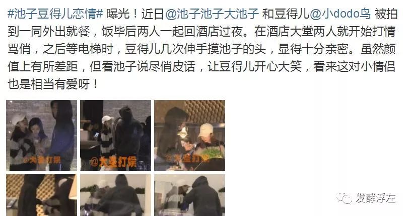 10月23日晚,有媒体拍到了池子豆与一名男子一起吃饭,就连吃饭的时候也不忘打情骂俏,我们来一起看看吧!