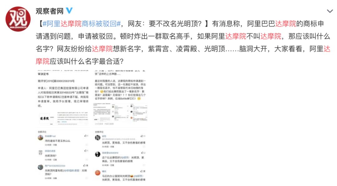 得知此消息后各大网友纷纷给达摩院想新名字,什么凌霄宫、光明顶、无极宫、日月神教等等应有尽有。那么大家觉得叫什么名字好呢?