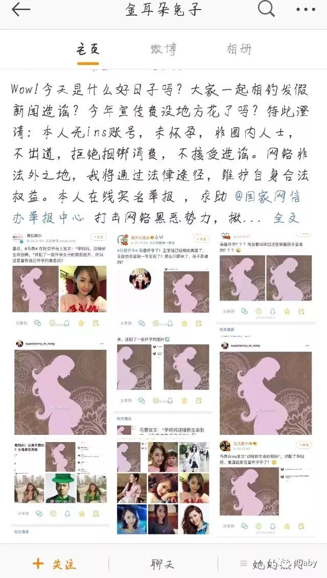 9月20日,马蓉发了一条关于别人造谣自己怀孕的动态,有多张动态截图,其中每一张图片中都有一幅孕妈妈的照片,这样照片是来自马蓉自己发的动态,并配文:迎接新生命到来。最后却成为网友纷纷猜测的话题,马蓉对此表示澄清自己未怀孕,并维护自己的合法权益。