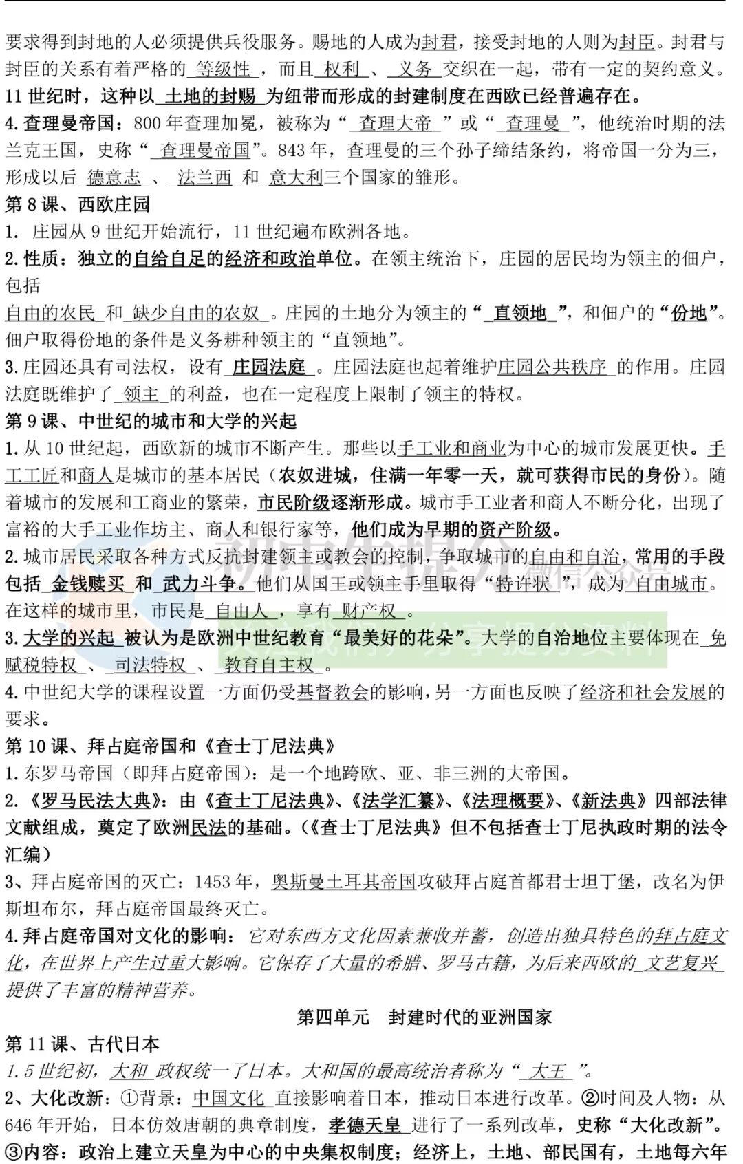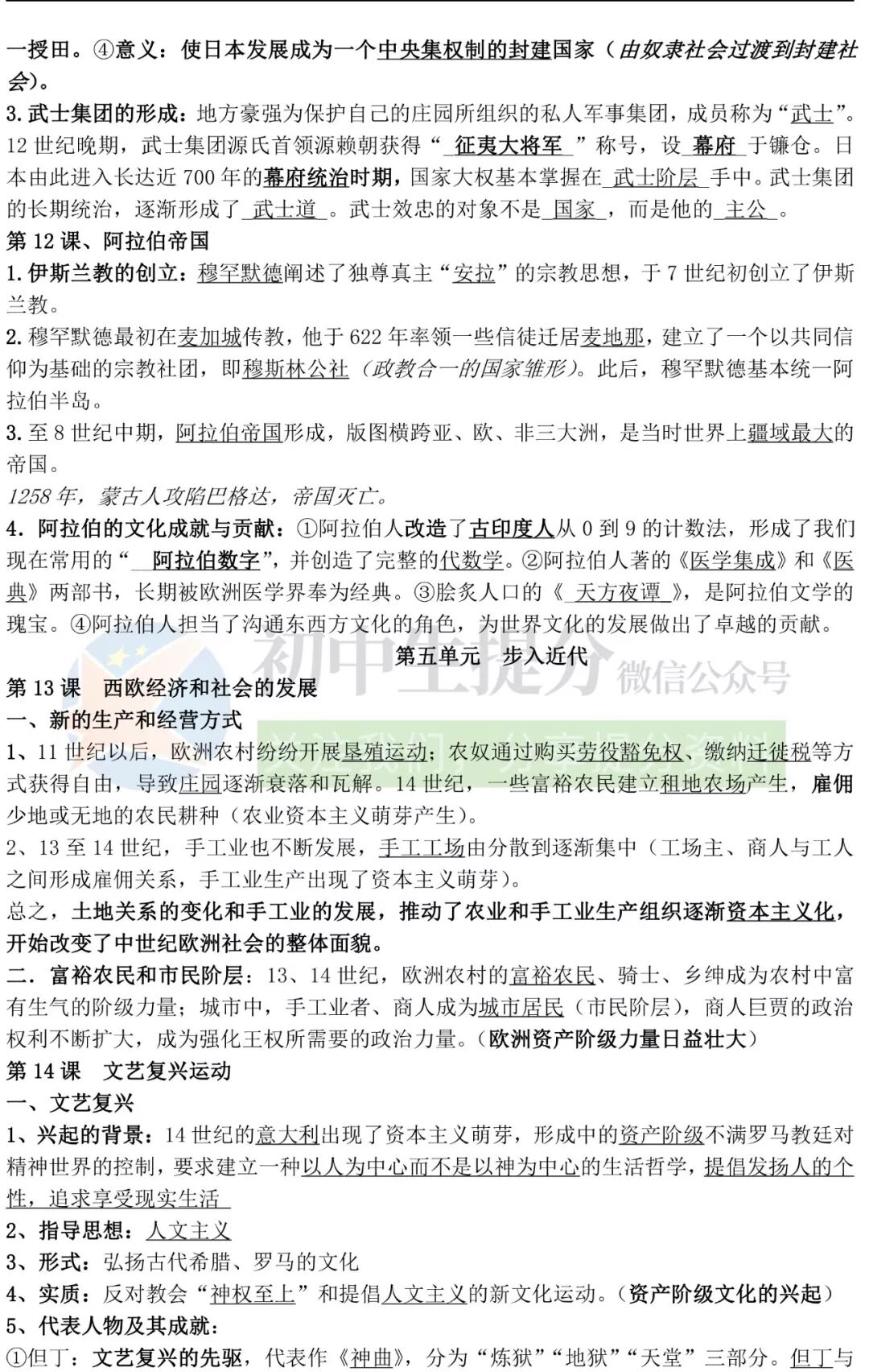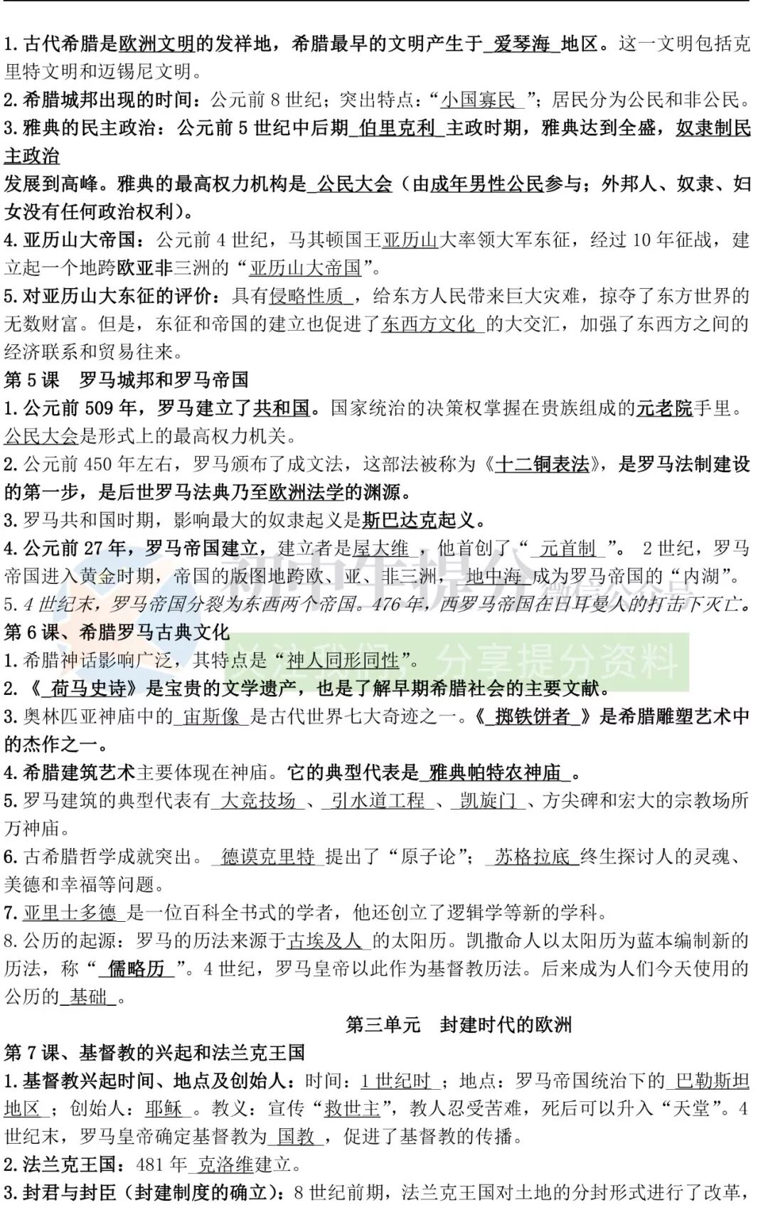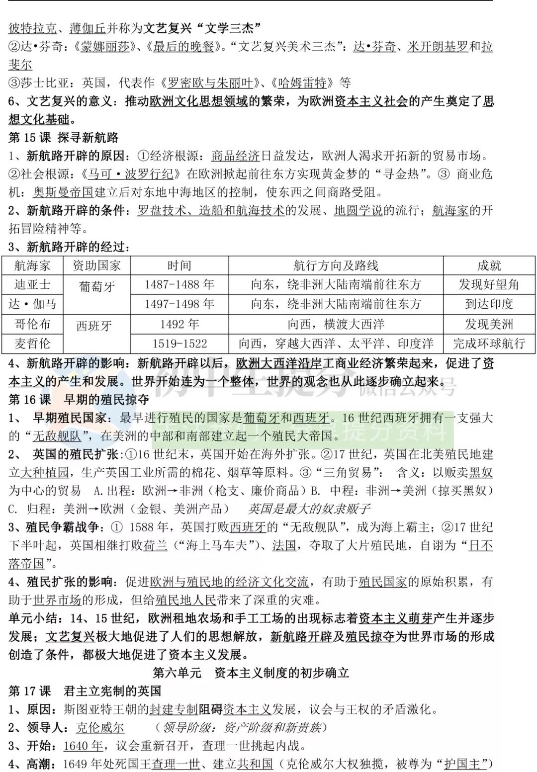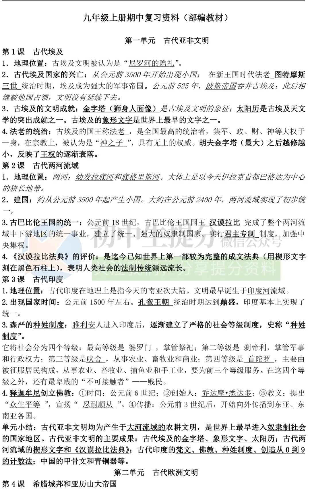 今天送给大家的是九年级历史(部编版)上册期中考试重点知识清单。