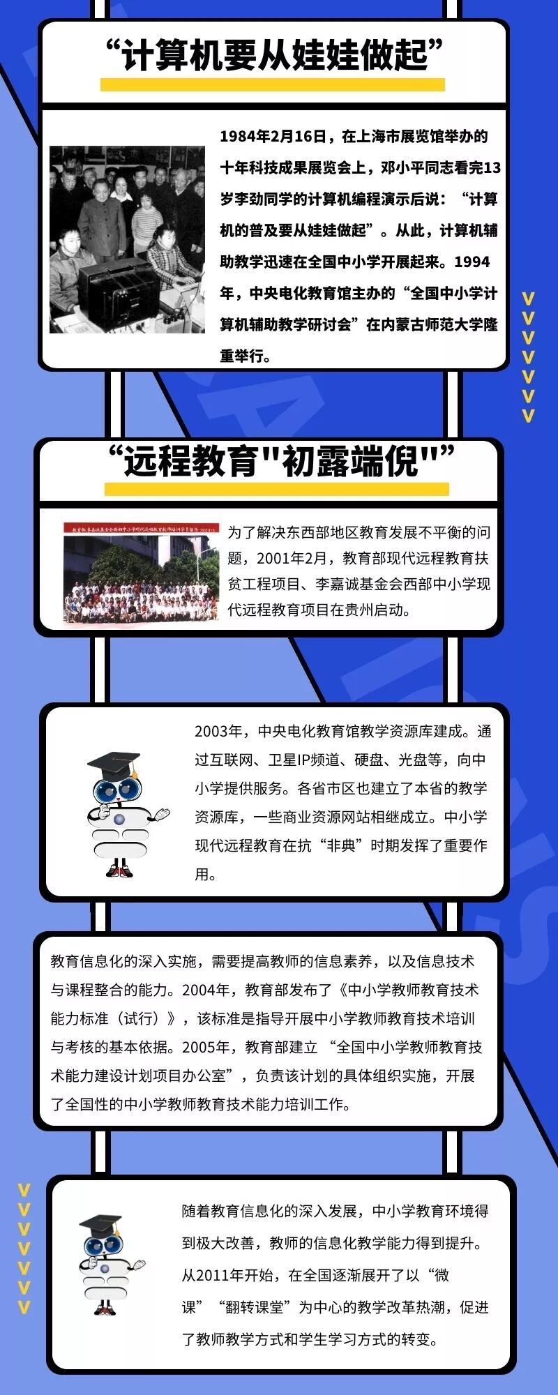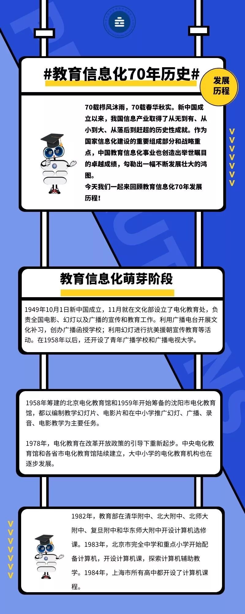 教育信息化有两层含义:一是把提高信息素养纳入教育目标,培养适应信息社会的人才;二是把信息技术手段有效应用于教学与科研,注重教育信息资源的开发和利用。教育信息化是指在教育领域全面深入地运用现代化信息技术来促进教育改革和教育发展的过程,其结果必然是形成一种全新的教育形态——信息化教育。今天贵州好前途教育带大家回顾一下教育信息化70年历程。