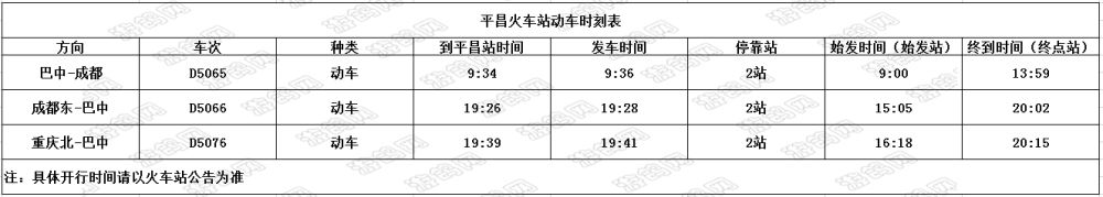 平昌火车站动车时刻表