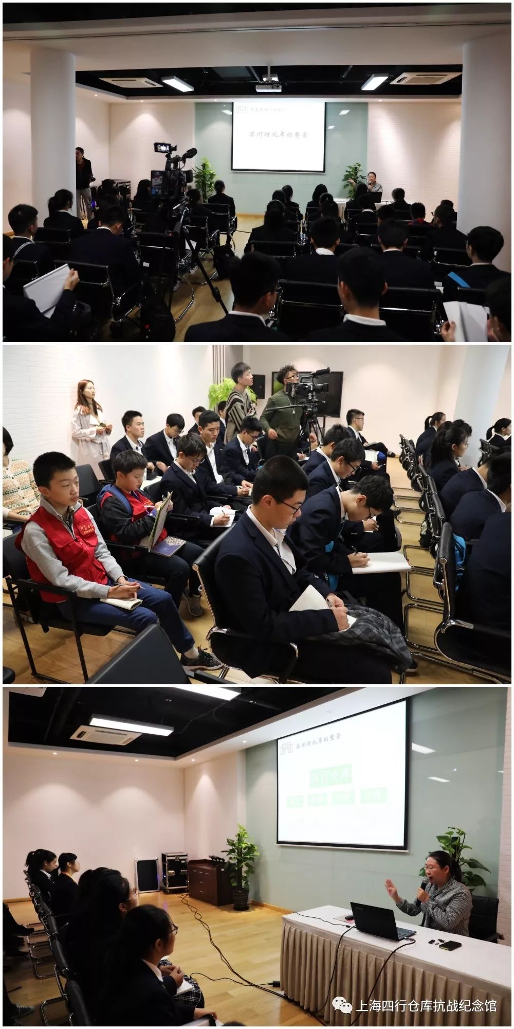 10月26日下午,也是四行保卫战的纪念日,当天下午向明中学的师生五十余人前来纪念馆,参与《四行保卫战》互动教育剧。在此之前,由纪念馆研究部资深馆员钟晔老师,为学生们讲述了整个四行仓库保卫战的大背景,和丰富的战斗细节。