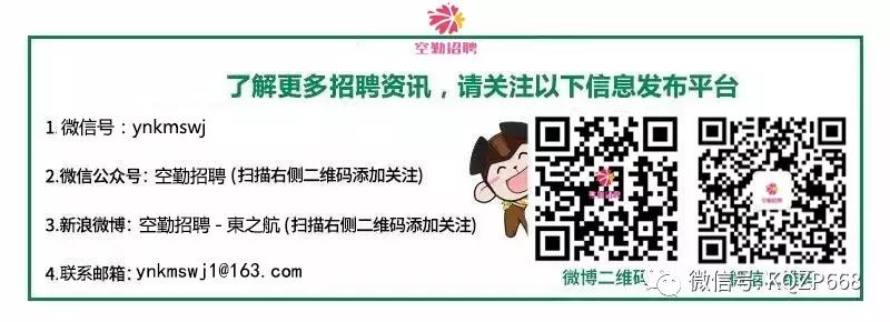 扫描下方二维码,关注“中国南方航空招聘”微信服务号,点击常用菜单栏【简历投递】-【乘务(安全)员】进行报名!