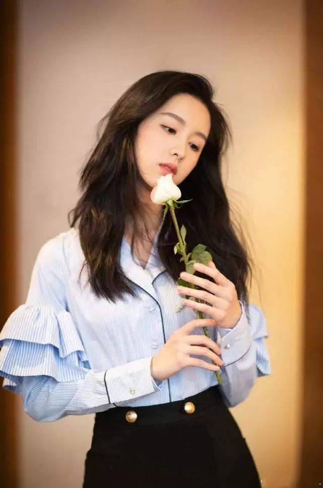 当天陈都灵穿的这件蓝色条纹衬衫,竖条纹的元素街上非常清新的色彩,可以在视觉上拉高身材比例。较为宽松的版型,没有什么束缚感,大V字的领口露出一点陈都灵的性感锁骨,真的非常有心思。双层花边的袖子装饰,更是整件衣服的点睛之笔,让陈都灵看起来更加的俏皮少女范,美极了。