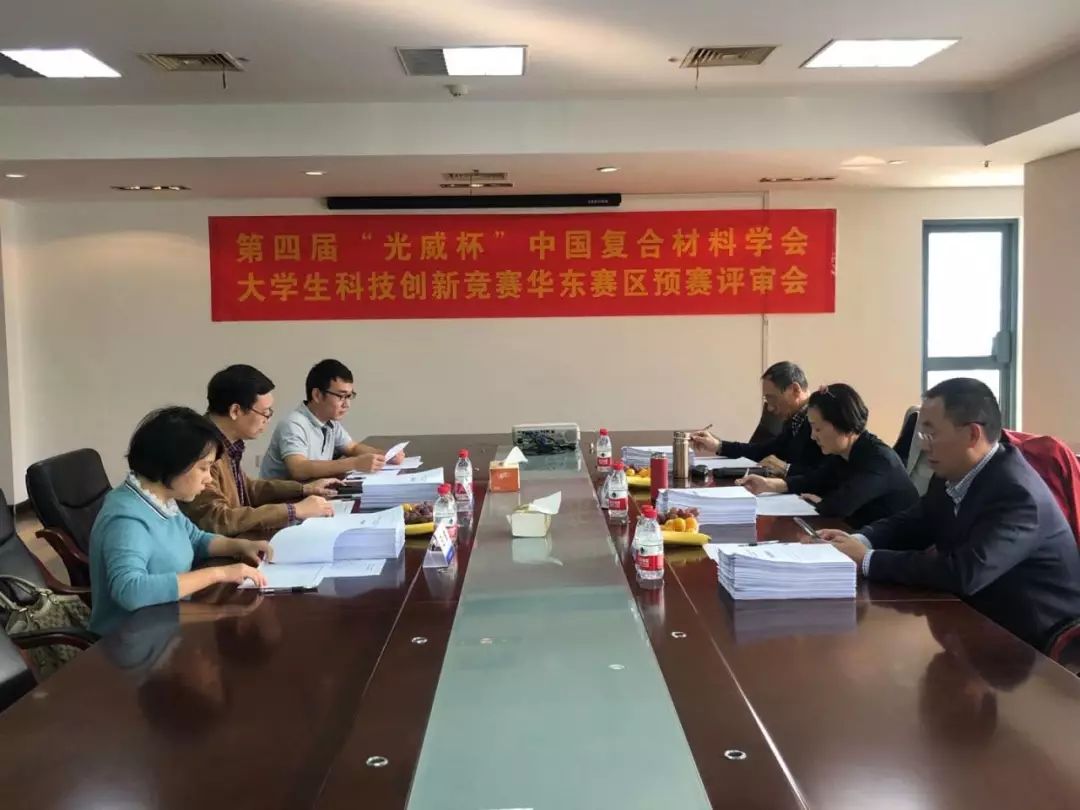10月24日下午,第四届“光威杯”中国复合材料学会大学生科技创新竞赛华东赛区初赛于南京航空航天大学明故宫校区综合楼320会议室举行。该赛事华东赛区初赛评审工作由江苏省复合材料学会与我校材料科学与技术学院共同组织。参与此次评审的专家有:南京大学化学化工学院贾叙东教授、金陵科技学院材料学院院长郝凌云教授、南京工业大学土木学院王俊教授及我校材料科学与技术学院崔益华教授。