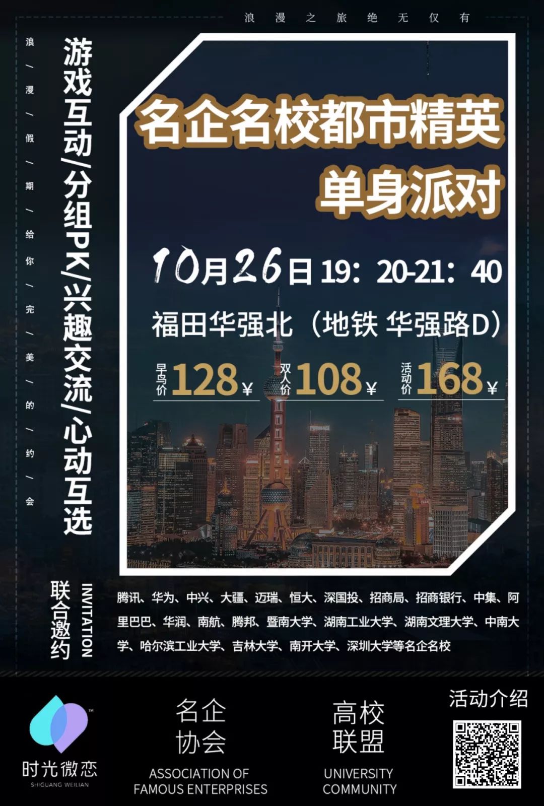 想要找一个上知天文下知地理的优秀GG&MM们,本周六10.26名企名校都市精英单身派对,优质帅哥美女云集现场,可要好好把握,千万千万不要错过咯~