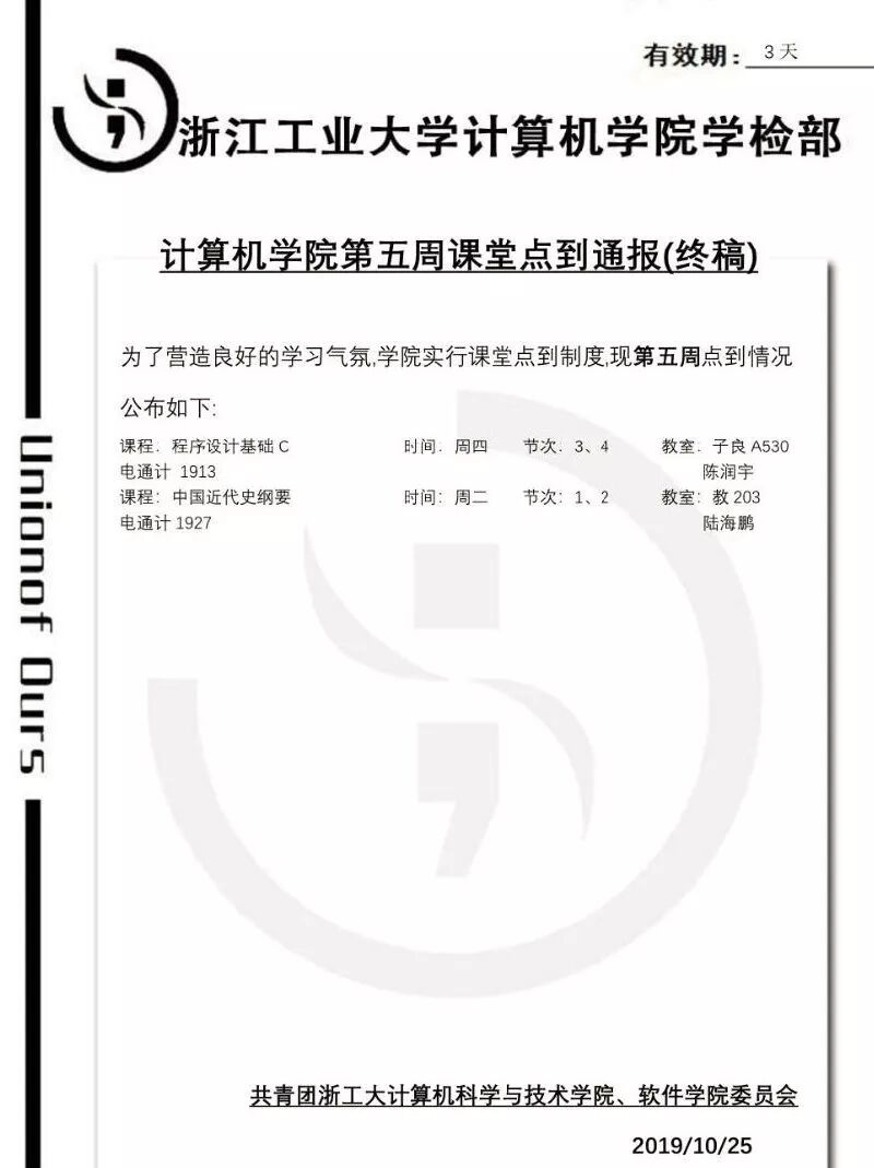 学风建设 | 计算机学院第五周课堂点到通报公示(终稿)