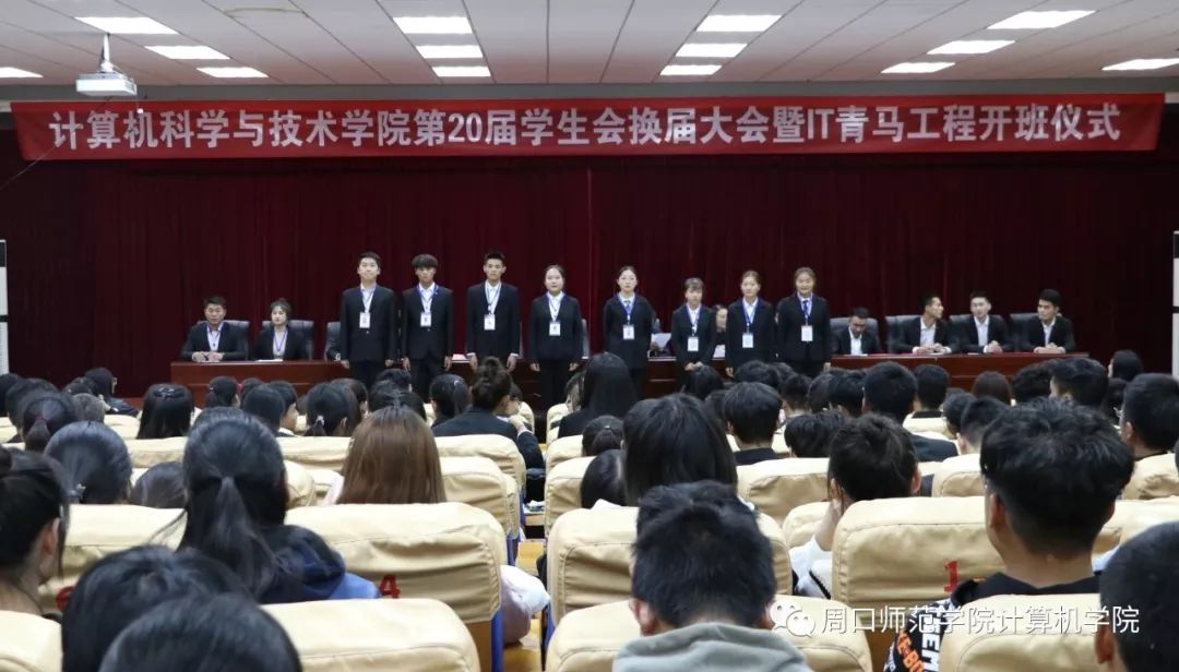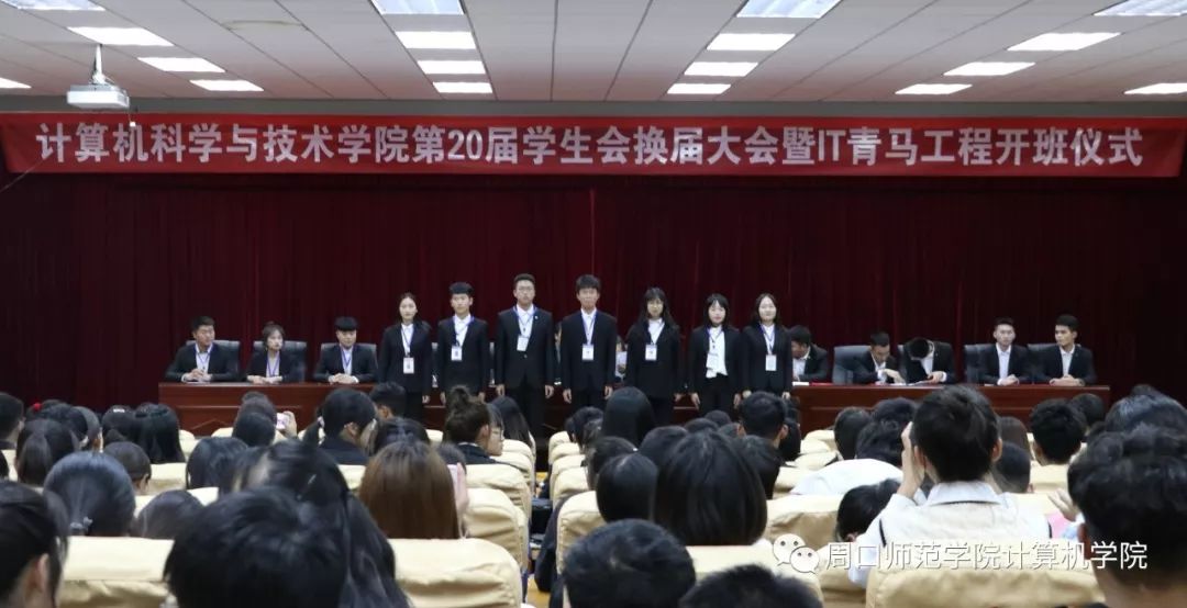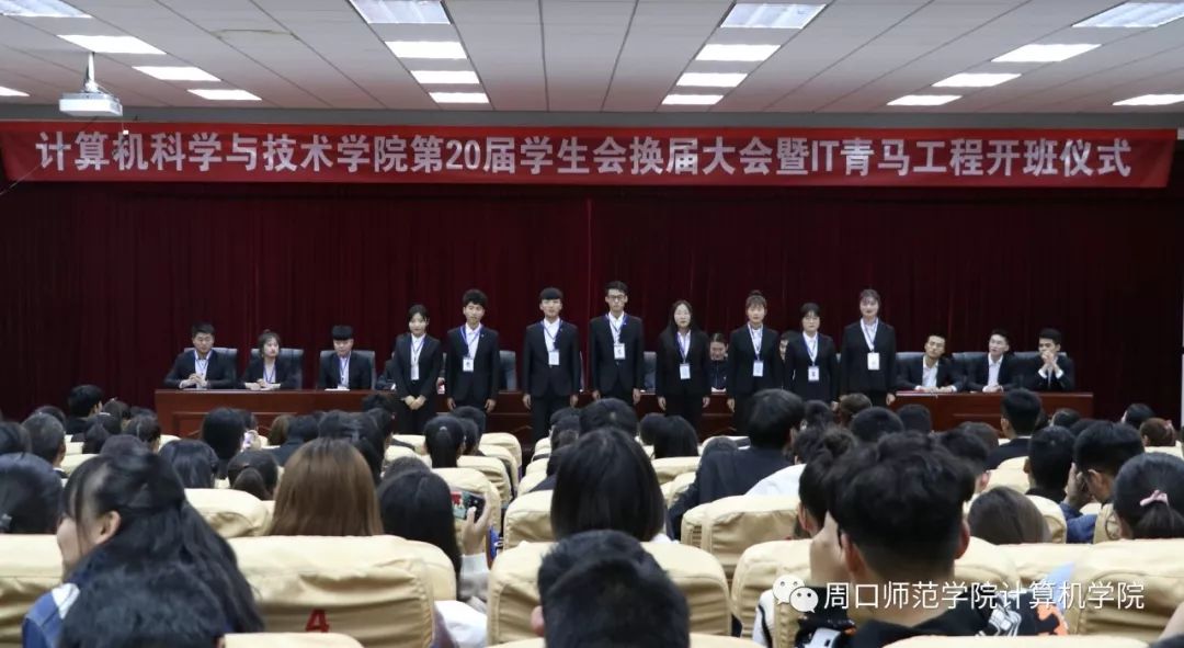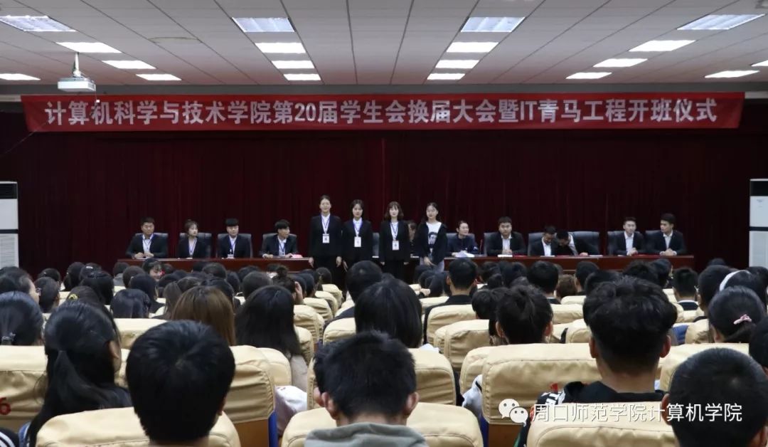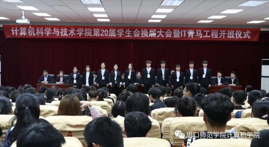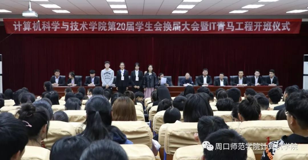为进一步健全学生会工作机制,保证工作的连续性和稳定性,10月25日晚,计算机科学与技术学院第20届学生会换届大会暨IT青马工程开班仪式在五号教学楼五楼会议厅举行。学院党总支书记彭榕、团总支书记渠瑞华,学工办副主任范宏,辅导员高楠、郭笑鸽,以及学生会全体成员和2019级学生参加本次会议。会议由渠瑞华主持。