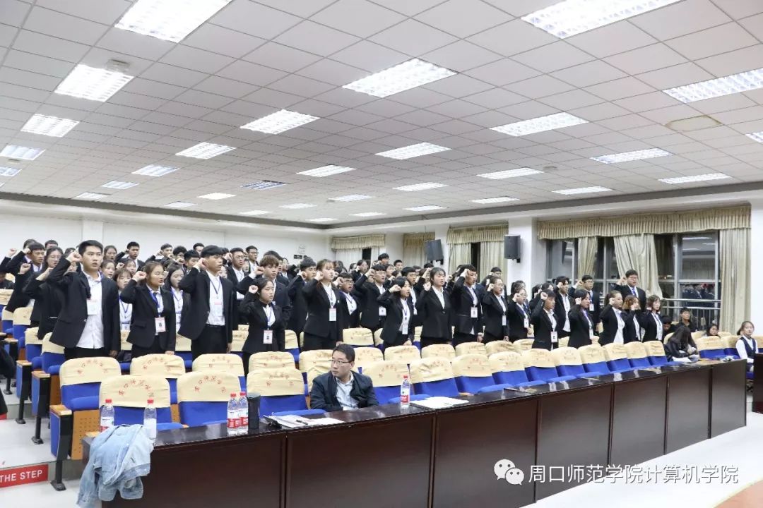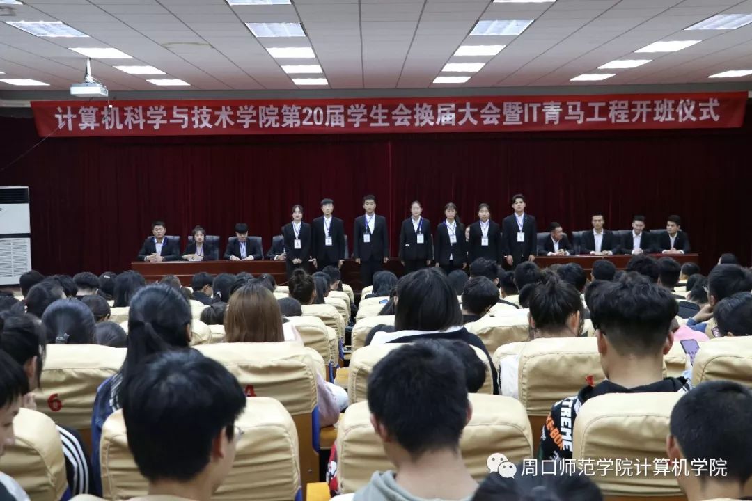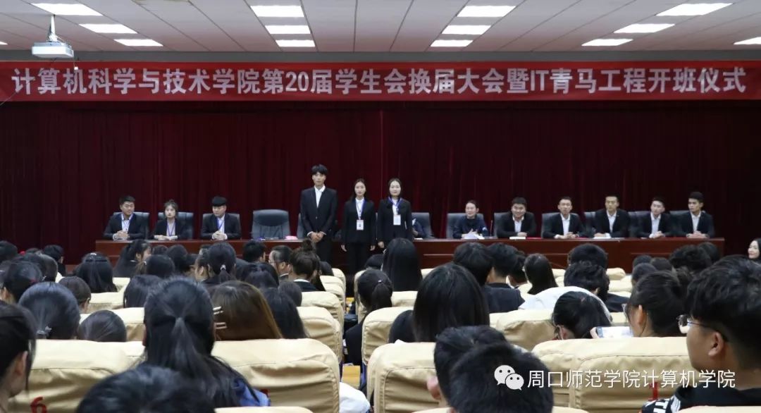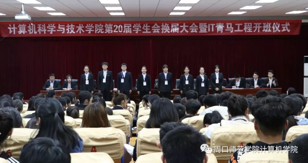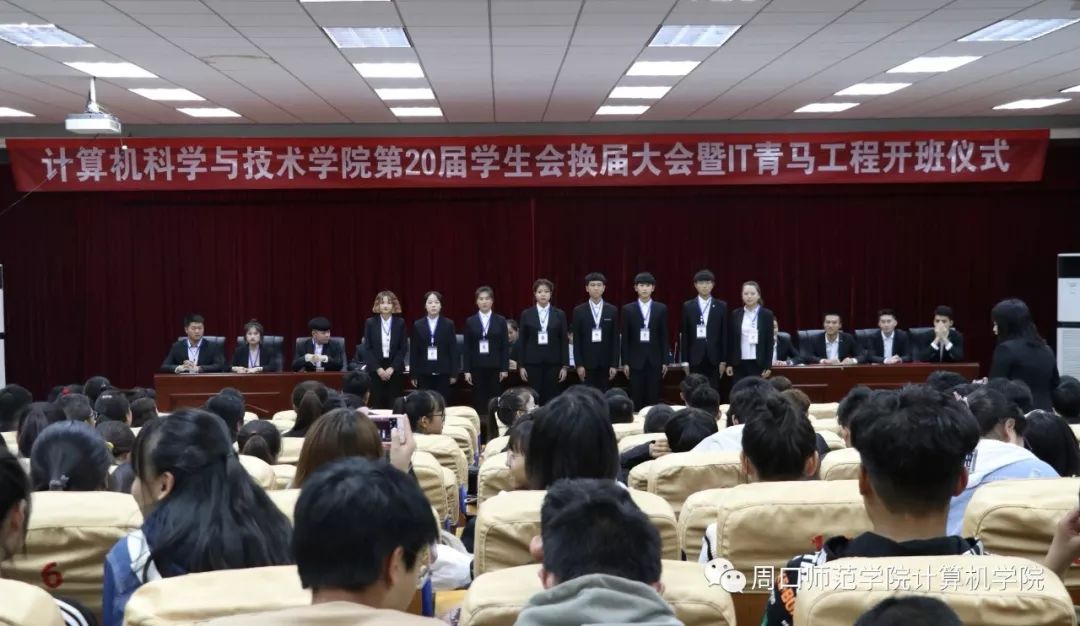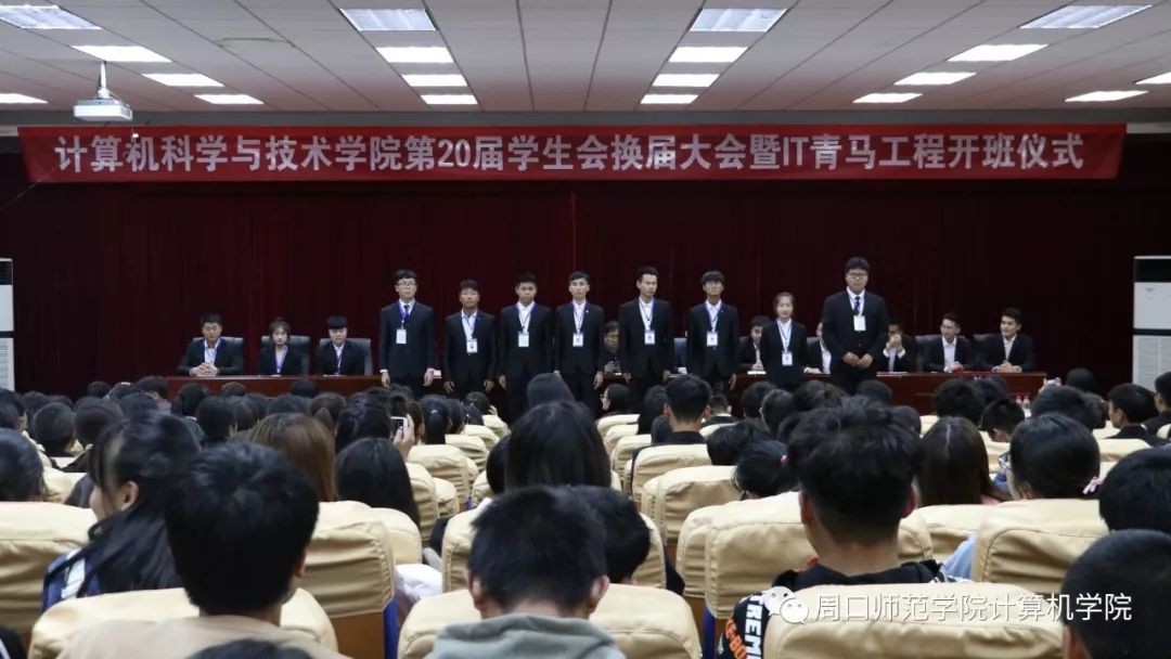 为进一步健全学生会工作机制,保证工作的连续性和稳定性,10月25日晚,计算机科学与技术学院第20届学生会换届大会暨IT青马工程开班仪式在五号教学楼五楼会议厅举行。学院党总支书记彭榕、团总支书记渠瑞华,学工办副主任范宏,辅导员高楠、郭笑鸽,以及学生会全体成员和2019级学生参加本次会议。会议由渠瑞华主持。