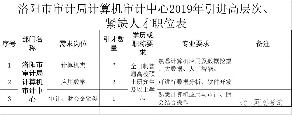 具体引进计划详见附件1《洛阳市审计局计算机审计中心2019年引进高层次、紧缺人才职位表》。