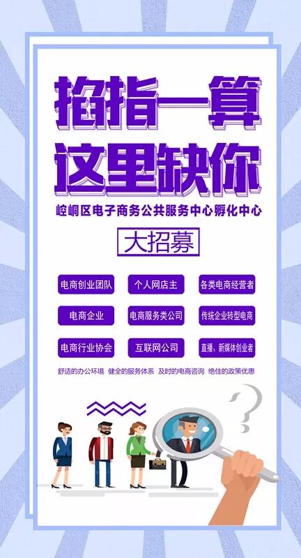 崆峒区电子商务公共服务中心创业孵化中心开始招募入驻创业人员创业孵化中心实行全免的激励措施,支持电商创业项目(人员)“拎包入住”。服务中心围绕企业孵化、电商培训、电商扶贫建立电商创业服务体系,为我区电商产业的发展培养更多具备互联网思维与技能的电子商务人才,使崆峒区电子商务形成抱团合力、区域整合、共同发展。带动农产品上行,提高农村电子商务发展,助力脱贫攻坚。