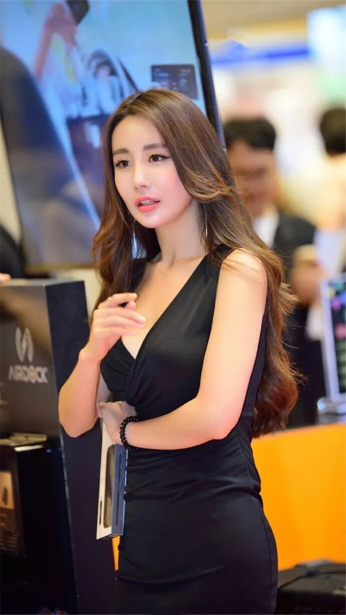 日产请来一位童颜车模,穿着长T恤,若隐若现