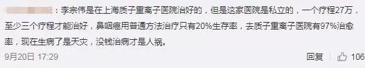 就像网友留言说的那样:“李宗伟是在上海质子重离子医院治好的,但是这家医院是私立的,一个疗程27万,至少三个疗程才能治好,鼻咽癌用普通方法治疗只有20%生存率,去质子重离子医院有97%治愈率,现在生病了是天灾,没钱治病才是人祸。”