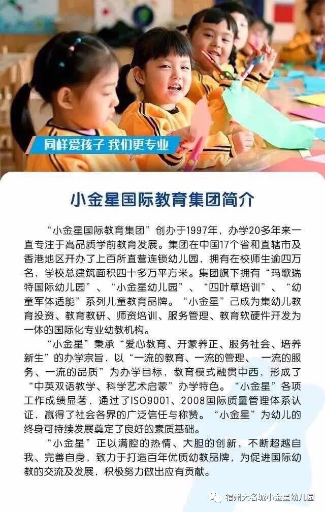 福州晋安区大名城小金星幼儿园2019年秋季招生开始啦!