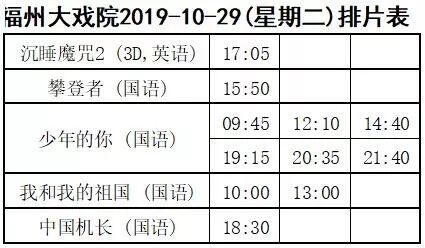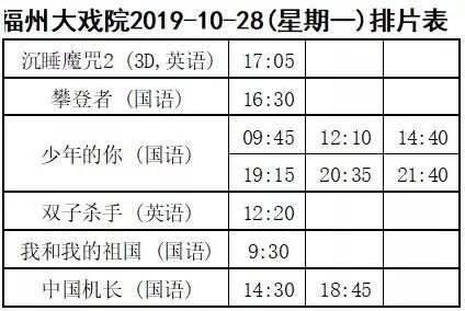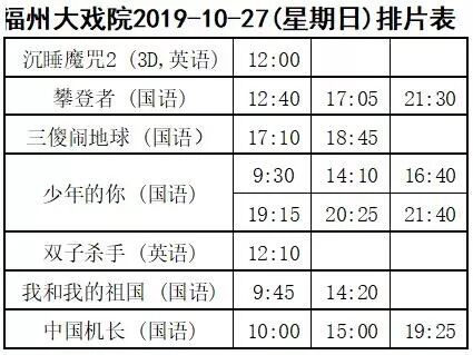 1、电影场次、放映时间以福州大戏院售票处LED公告为准;
