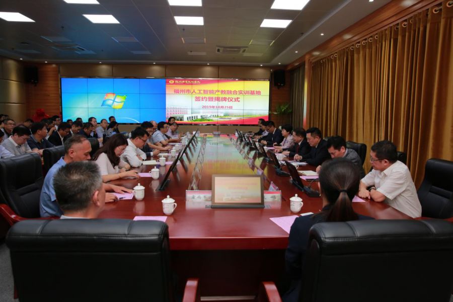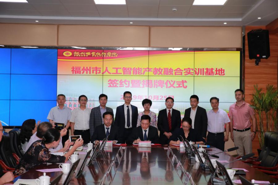 10月25日下午,由福州职业技术学院、福州市职业教育实训中心与深圳市商汤科技有限公司合作共建的福州市人工智能产教融合实训基地正式成立。福州市副市长李春、福州市教育局局长唐希、福州职业技术学院党委书记林子波、商汤集团副总裁柳钢、福州市教育局副调研员肖祥艳、福州市职业学校校长等出席签约暨揭牌仪式。校长李秋斌主持仪式。