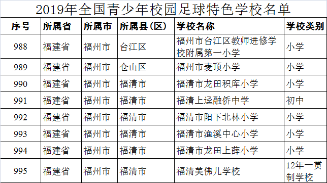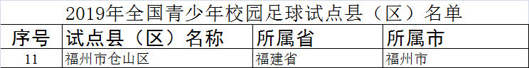 《2019年全国青少年校园足球特色学校、试点县(区)》