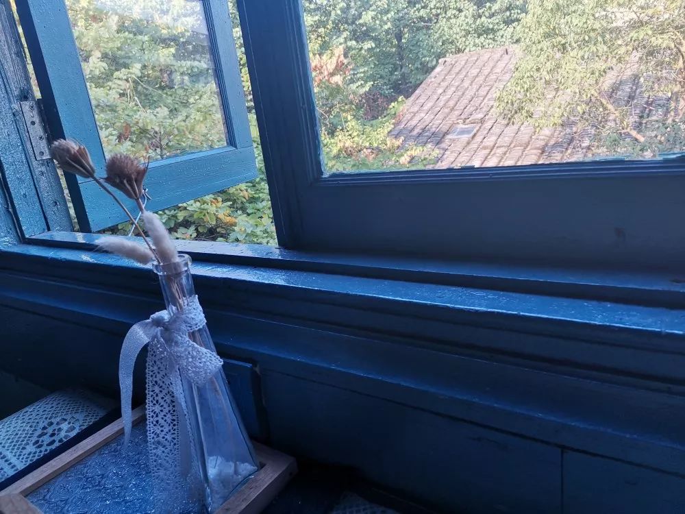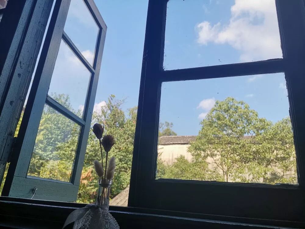 坐在窗边,微风袭来,一壶花茶。