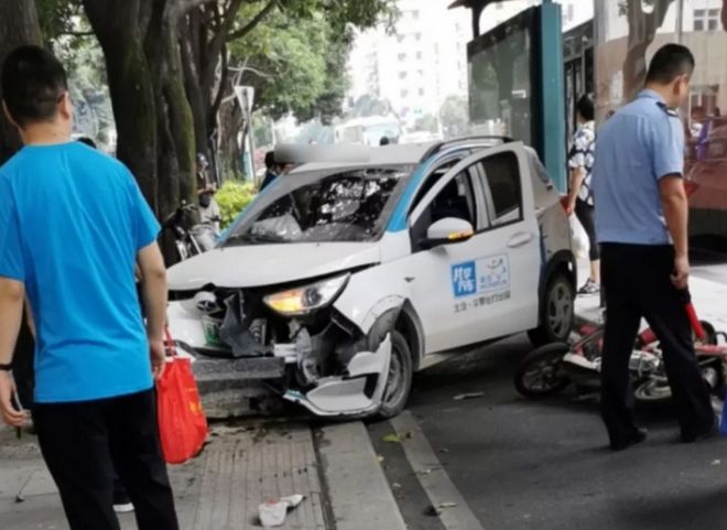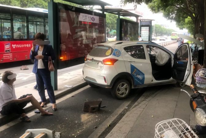 目击者刘先生告诉记者,事故发生在上午8点多,电动汽车是从机动车道斜着一路冲破护栏、公交站台,最后撞到路边的行道树才停下。当时公交站台周围的人还挺多,都被这一幕吓得不轻,受伤的两人更是吓坏了。