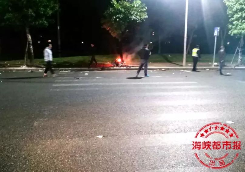 2017年11月26日晚上11点左右,福州上街联榕路一辆共享汽车与一辆电动自行车相撞,37岁女骑手被撞飞十几米,不幸身亡。电动自行车也撞在路边行道树上,发生自燃。