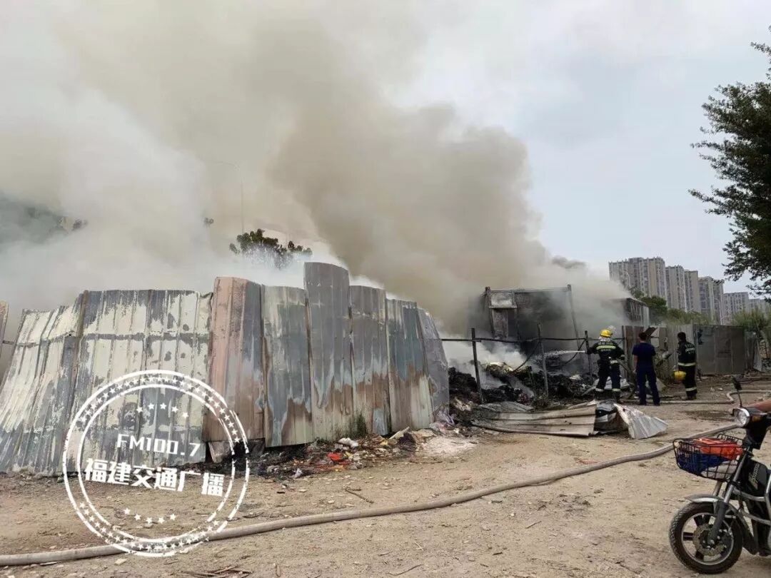 在仓山区南台路和利民路交界处,一处用普通钢板围起来的围挡内,不停往外冒着浓烟。虽然相隔有大约10米远,但还是有明显的胶臭味直冲脑门,伴随浓烟而起的,还有非常明显的明火。