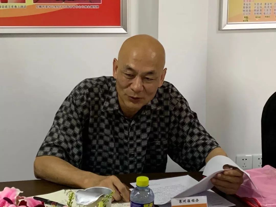 傅金镇会长对泉州驻榕办陈主任一行的到来表示了热烈的欢迎,并汇报了福州市石狮商会的会员企业整体概况、办会理念和宗旨。