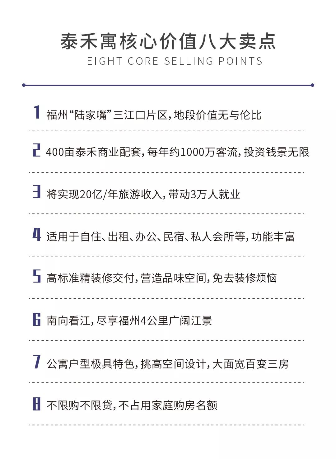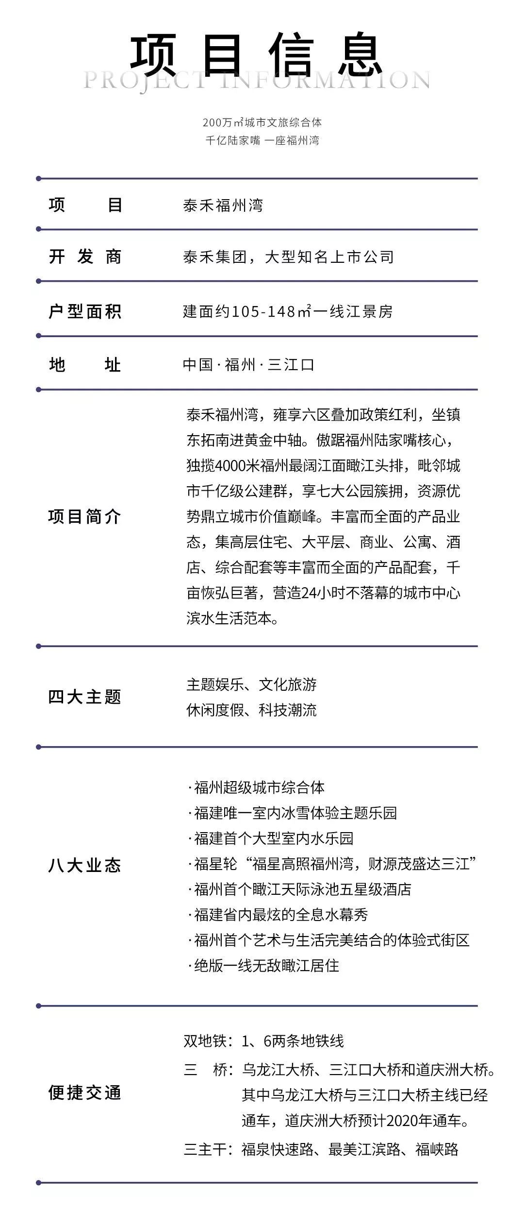 本项目推广名为“泰禾福州湾”。本宣传资料为要约邀请,仅供参考,均不具备约束力,买卖双方的权利义务以双方签订的《商品房买卖合同》及附件等协议及政府规划为准;本资料制作时间2019年10月26日,有效期7天,项目可能会不定期对宣传材料进行修改,敬请留意最新资料。文章部分文字以及图片来源于网络,版权归原作者所有。