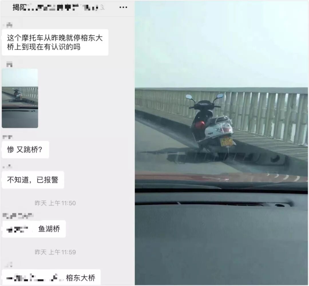 昨天早上有网友在群里报料称,在榕东大桥桥上停着一辆粤V牌白色摩托车。