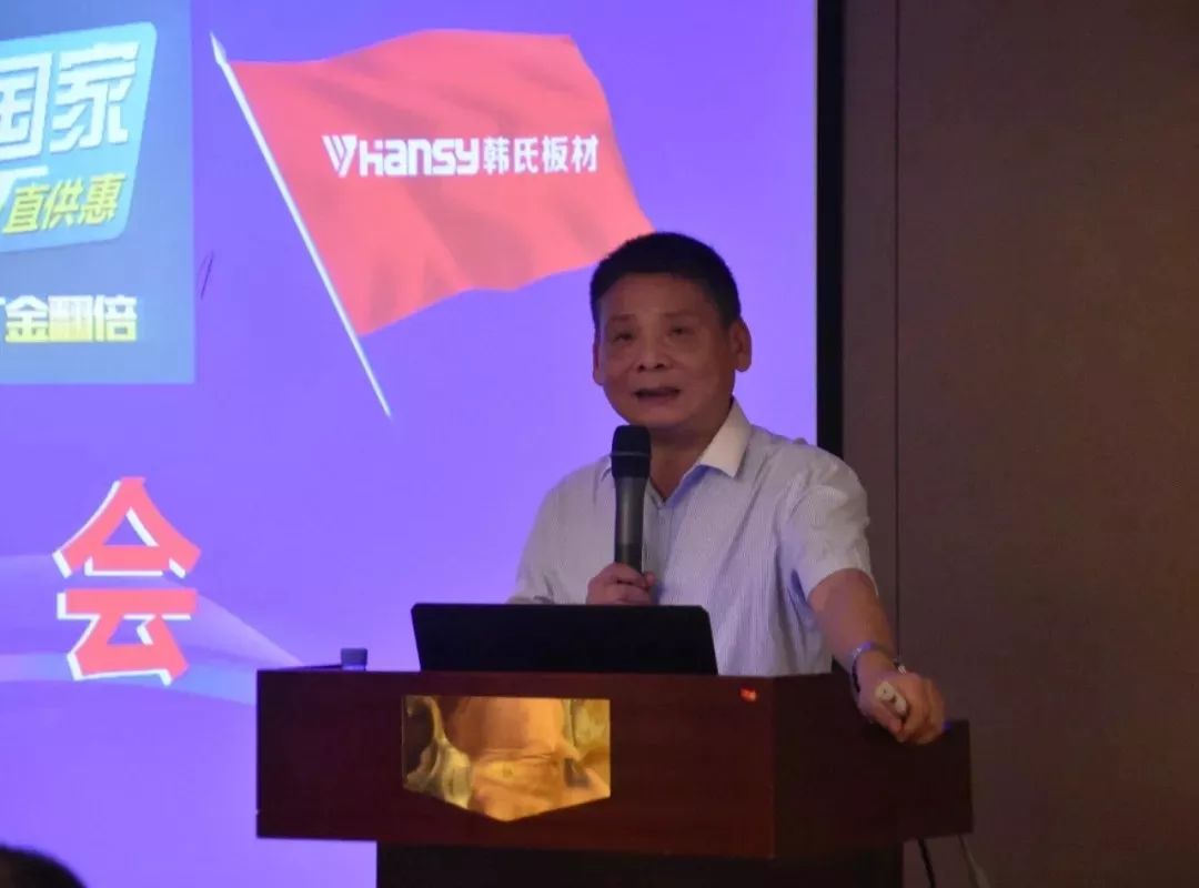 随后,品牌营销中心总经理孙恒作品牌分享,详解市场趋势和行业发展方向,分析明确韩氏品牌产品线定位和服务优势,明晰盈利增长点和营销新思路。目前,韩氏品牌接连推出多种新型花色、配套型材、五金拉手等多类新品,开启家装迭代新生态。“板上墙、板变柜、板变门”刷新了板材行业现有的产品格局和家装模式,帮助终端客户开启更多的终端赢利点。