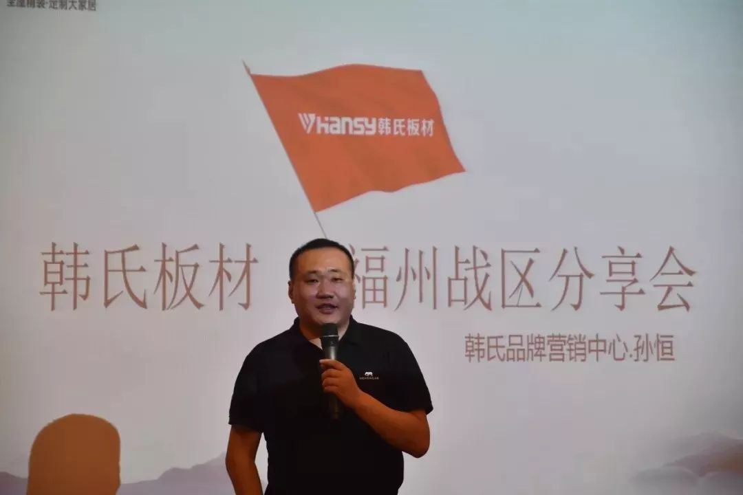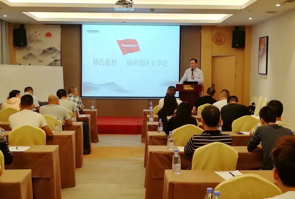 10月25日,“健康中国家——百万让利 ‘韩氏’工厂直供惠启动会暨韩氏福州战区分享会”在福建福州举行。来自福建福州地区韩氏精英们齐聚启动会现场,中原集团董事长韩勇、品牌营销中心总经理孙恒、韩氏运营总监侯国庆,常旺木业董事长曾焕旺、总经理曾国春、营销总监谢新荣等领导出席此次会议。