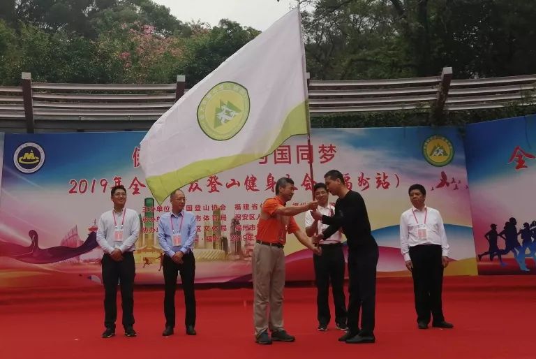 授福州市2019年全国群众登山健身大会会旗