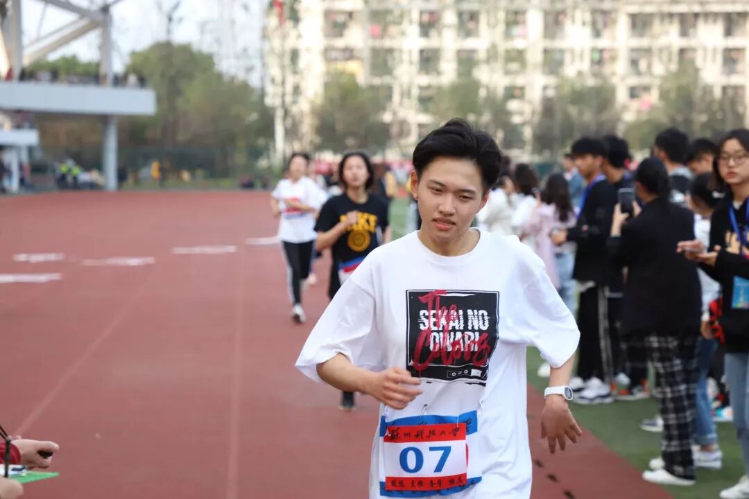 决赛场上,只听“啪”的一声令下,跑道上的八位选手便像离弦的箭一样冲出起点。只见1832号黑衣男生闪电般的脱颖而出,远超其他七位选手,一举夺得决赛男子组冠军!
