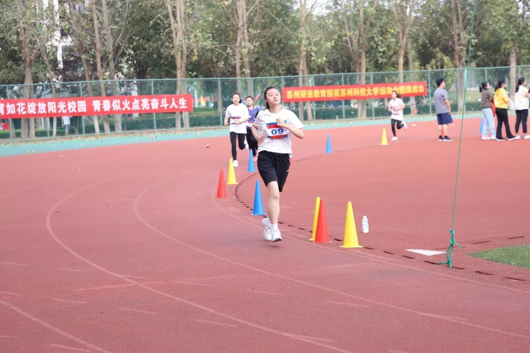 凉天寥廓,白日晶明。清秋之晨,苏州科技大学的体育赛事正如火如荼地进行着。轻松明快的背景音乐下老师同学的热情欢呼中运动健儿们舒活着筋骨为接下来的那一百米摩拳擦掌。只见0642号红衣女生不慎摔倒但她以迅雷不及掩耳之势快速弹起继续比赛。勇敢坚持正是我们这次运动会的精神内核。