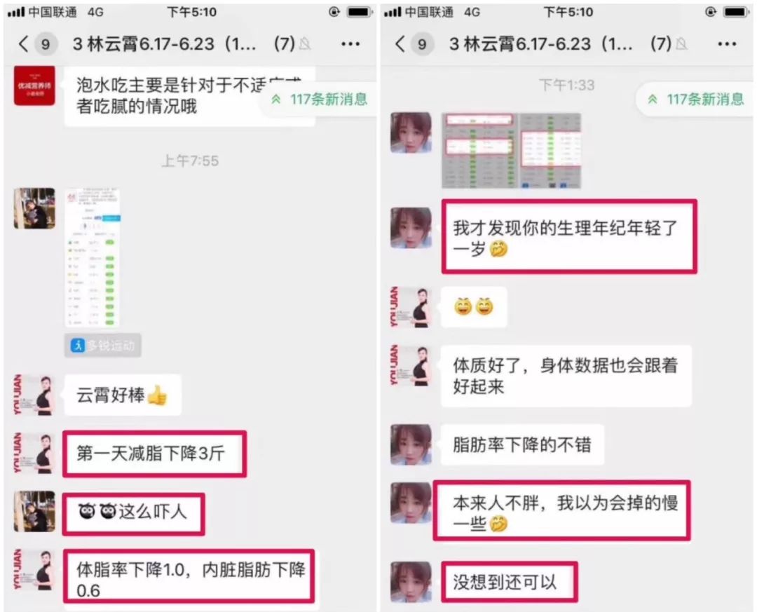 ?优减一对一服务。客户云霄在营养师一对一指导下1天减重3??斤??体脂率下降1%,内脏脂肪下降0.6%,生理年龄小了一岁?
